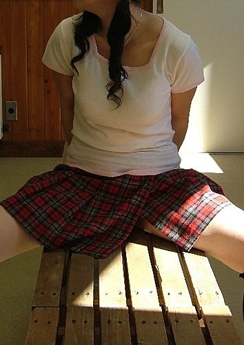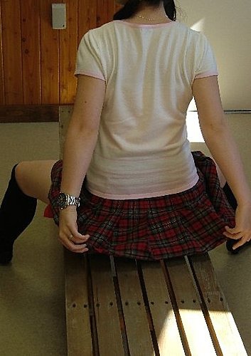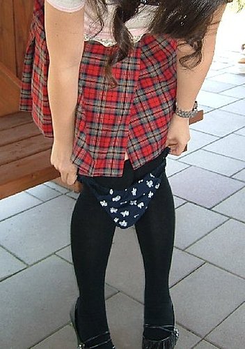重點是她裙子很短(不管走路或小彎腰)都可清楚私密處