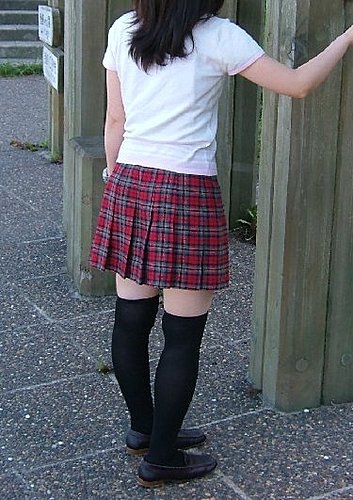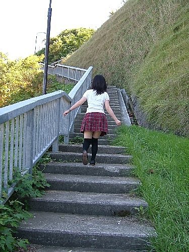 重點是她裙子很短(不管走路或小彎腰)都可清楚私密處